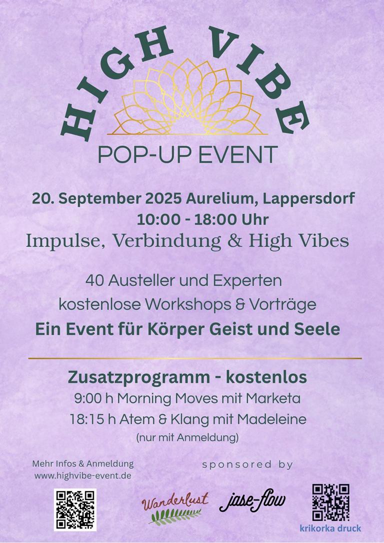 Ich werde beim ,,High Vibe – Pop up Event“ im Aurelium in Lappersdorf am 20. September als Aussteller mit dabei sein.