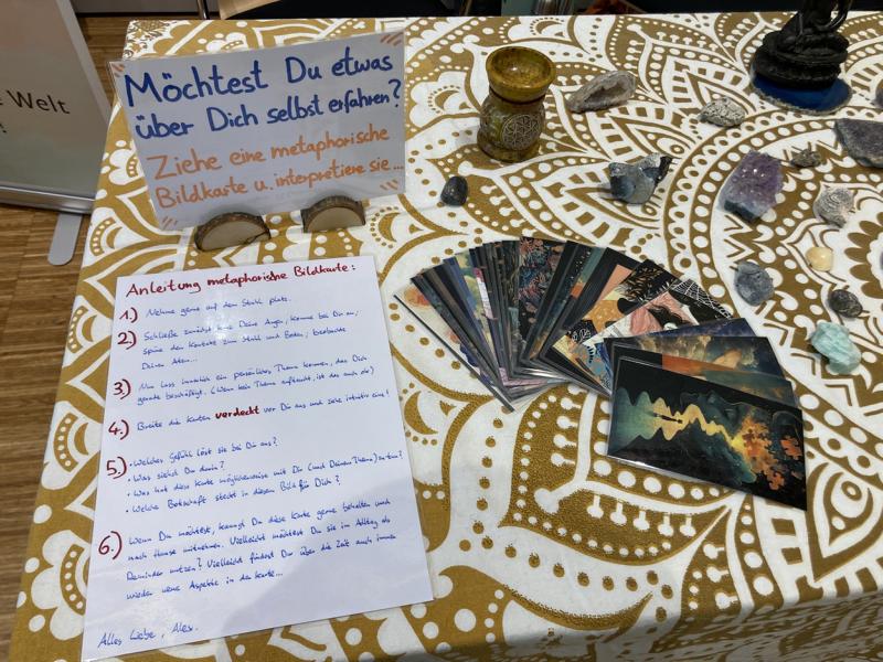Ich bin dankbar für die Einladung und Möglichkeit mich dort mit meinen Angeboten zu präsentieren. Außerdem habe ich mich gefreut über all die ehrlichen und auch berührenden Gespräche, die u.a. durch meine Kartenübung angeregt wurden:
